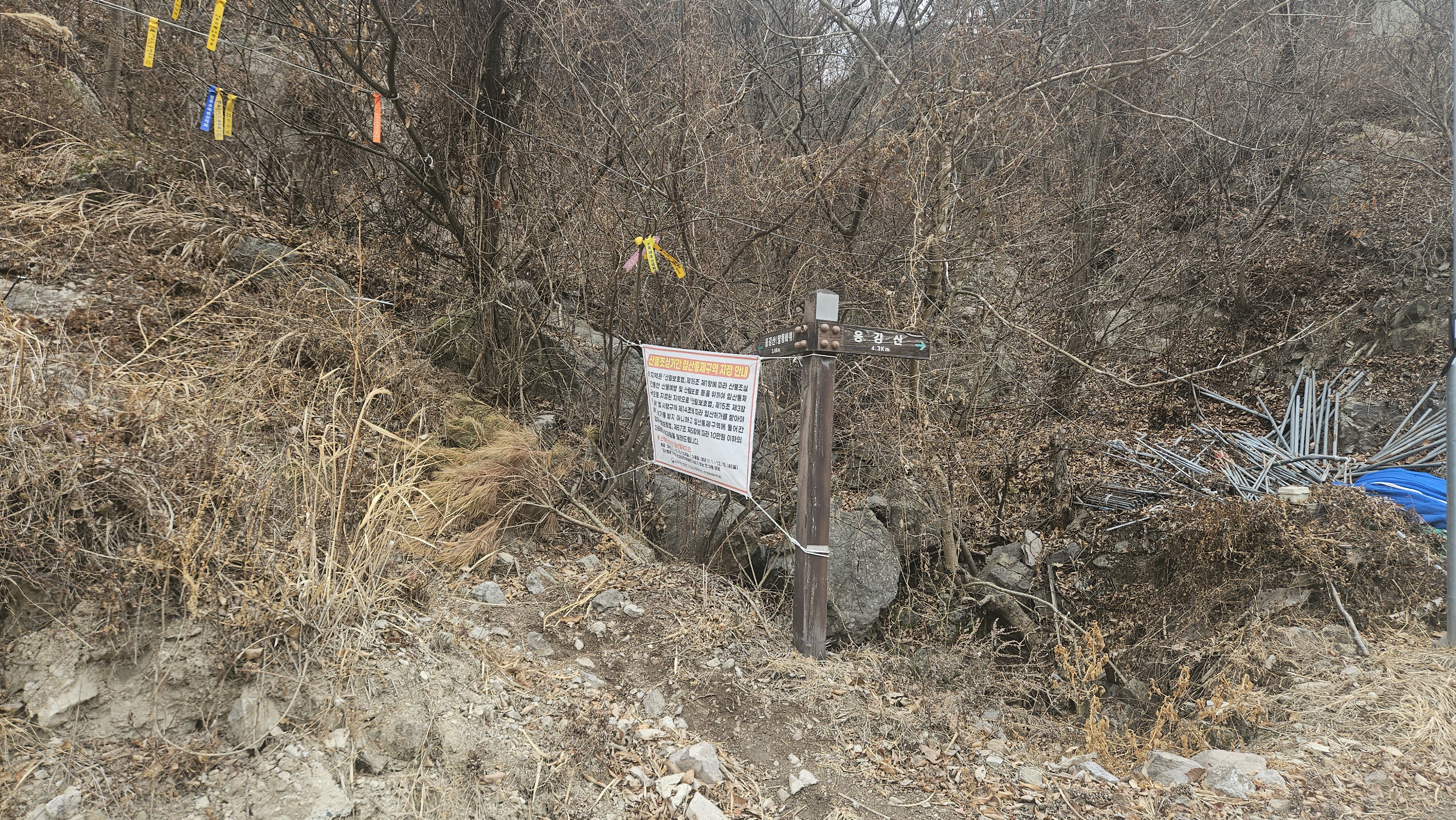 여기서 용둔봉 쪽으로 진행해야 하는데 착각을 하고 계곡길로 내려섰다.